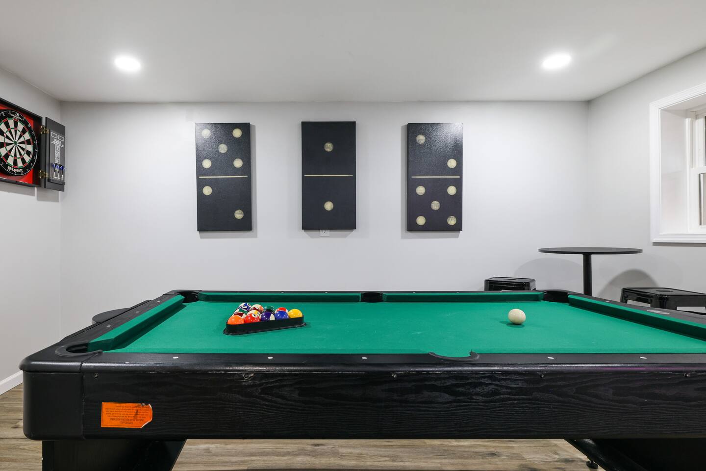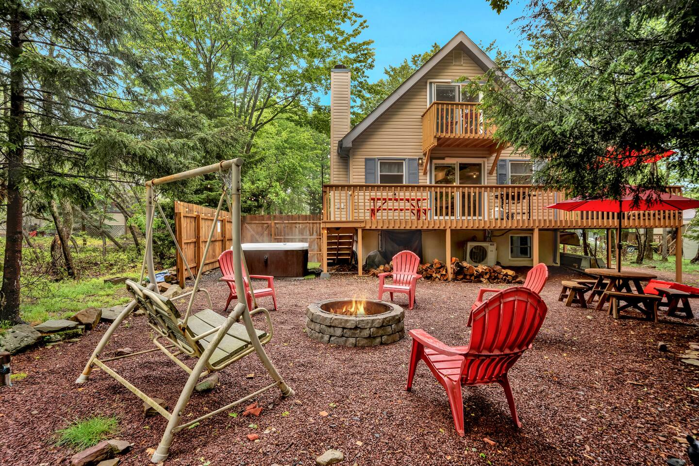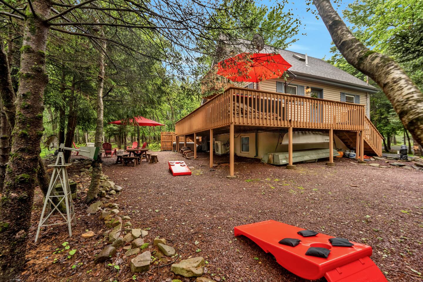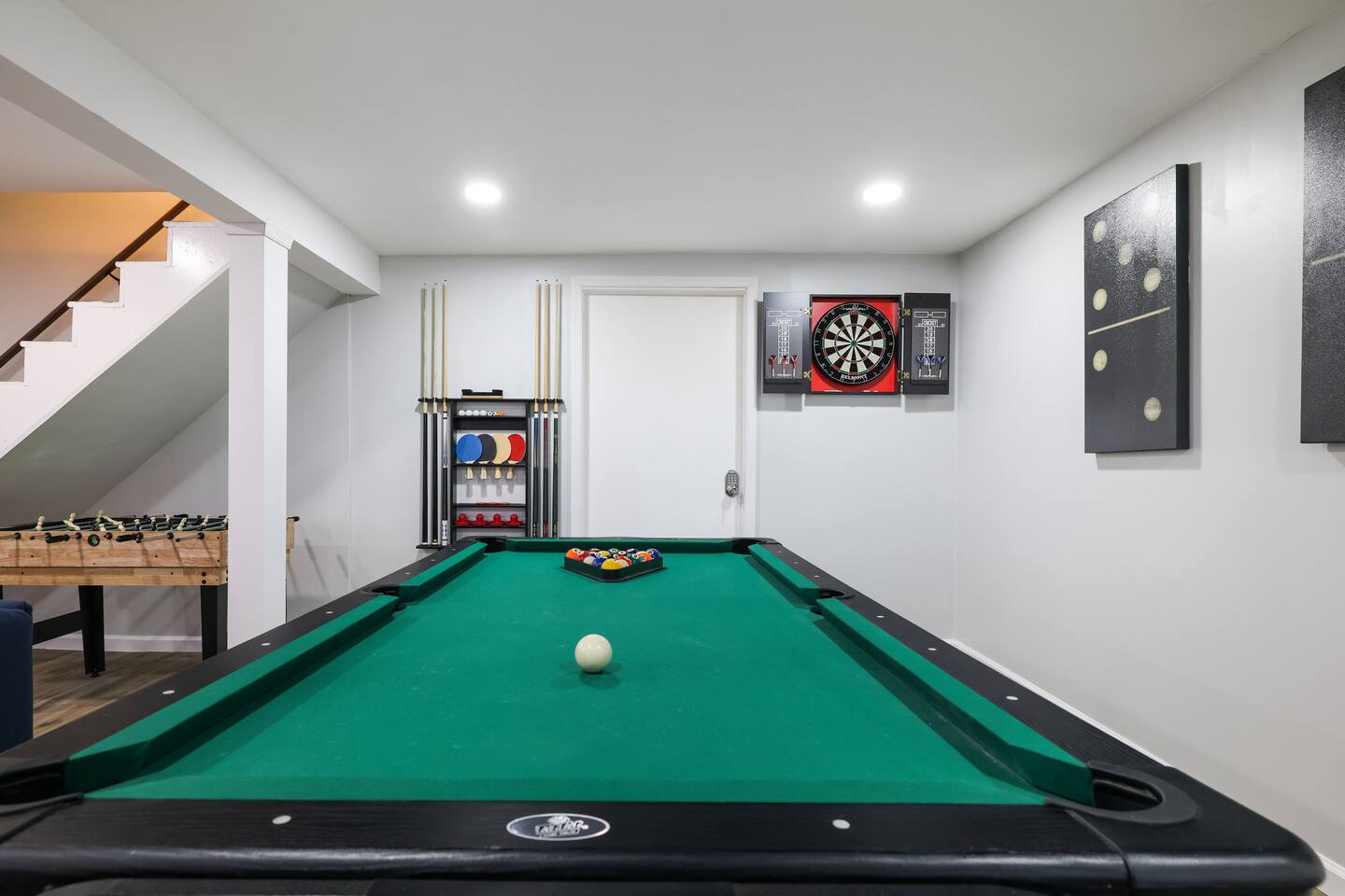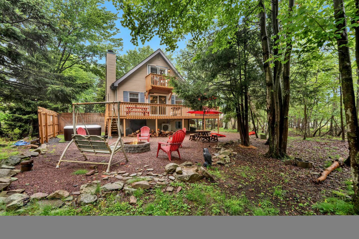 ★LOCATION We are located near Kalahari Indoor Water Park, Camelback Ski Mountain , Mount Airy Casino and the Pocono Raceway! ★KITCHEN Fully equipped w/ cooking basics, dishes & utensils, electric stove, dishwasher, Keurig duo coffee maker, tea kettle, toaster and blender. Fully stocked coffee station. ★ LIVING ROOM Cozy living room with a sectional and loveseat. 55" SmartTV. Electric Fireplace. ★ DINING Expandable dining table ★ GAME ROOM Located on the ground level. The game room features a 3 in 1 multi game table (Pool, Ping Pong& Air Hockey), darts, foosball table and plenty of board games. Comfy sectional, bean bags and a 65" Smart TV. ★OUTDOOR Deck with lounging couches, picnic table & propane grill. Hot tub Fire pit ★ BEDROOMS BEDROOM 1 - (1) Queen Bed, 26” Smart TV + Dresser + Desk BEDROOM 2 - (1) KING Bed + (1) Twin Bed with Trundle + Balcony BEDROOM 3 - (1) Queen Bed + (1) Twin Bed with Trundle BONUS BUNK AREA - (2) Twin over Twin Bunk Beds + Dresser ★ PARKING Driveway in front of property can fit up to 6 cars ★ FEATURES Smart TVs High Speed Internet Wifi (1.2 GB) Smart Lock for Keyless entry BBQ Propane Grill Electric FirePlace Washer and Dryer (Available upon request) Hairdryer Linens | Towels Body Wash | Shampoo| Conditioner | Toilet Paper Dish Soap | Paper Towels | Cleaning supplies