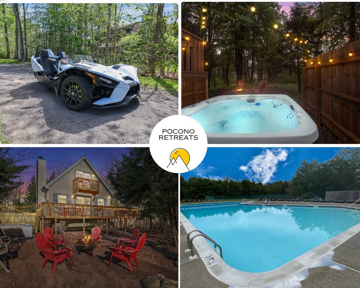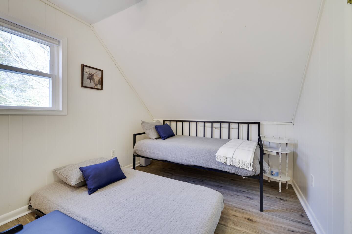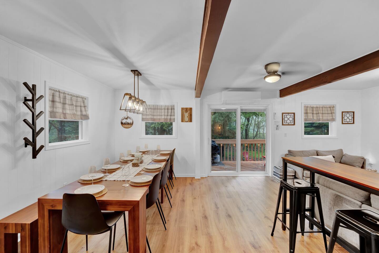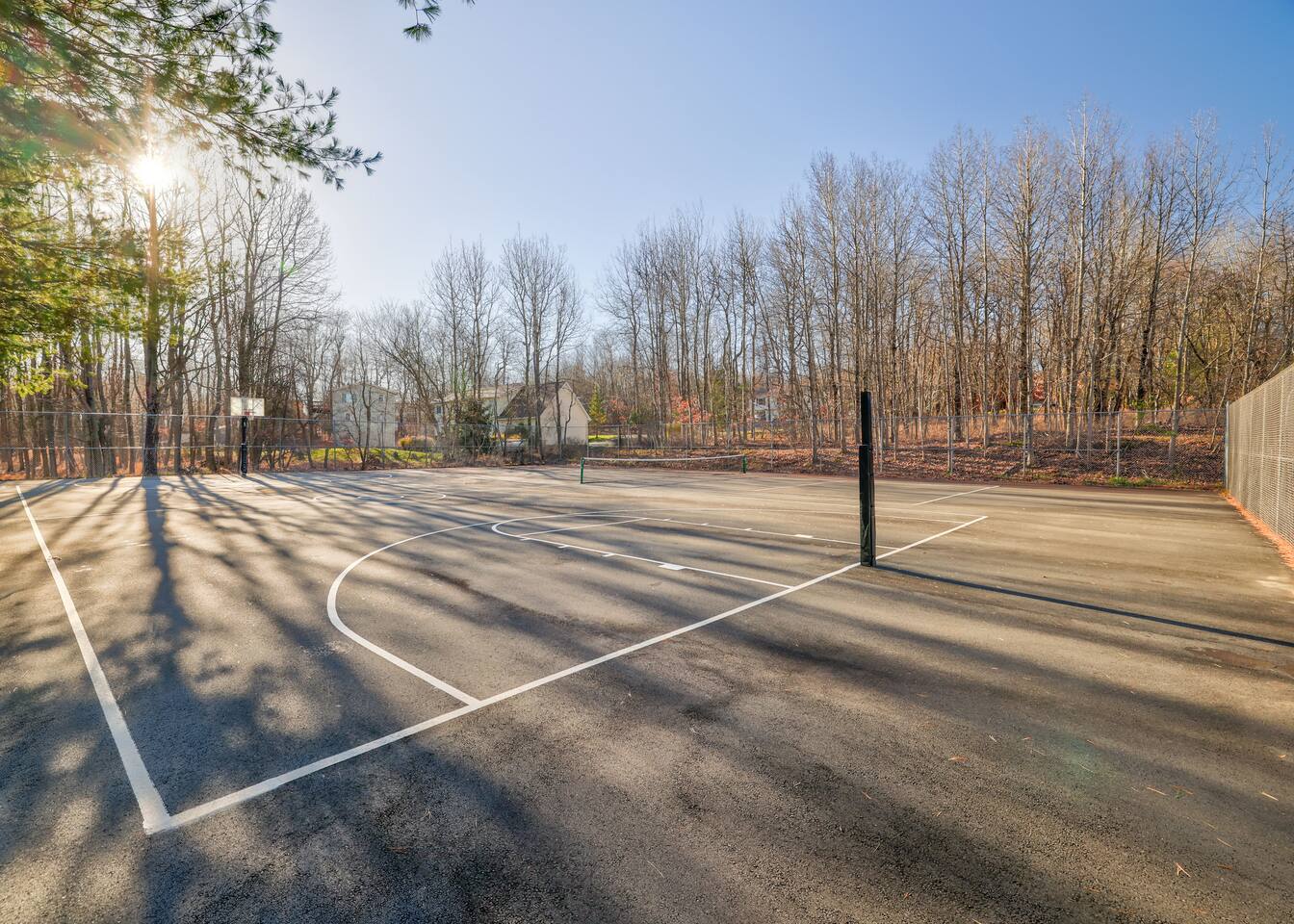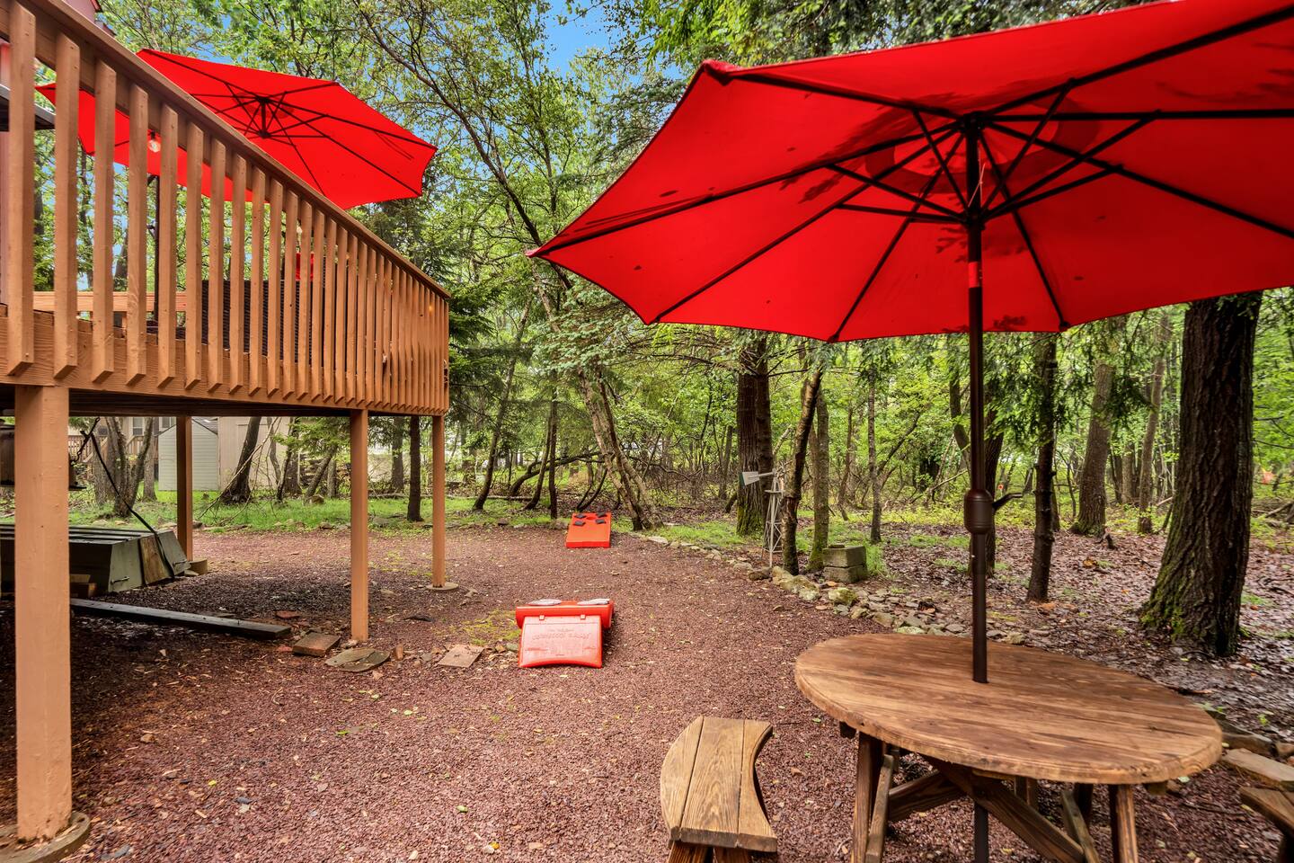 ★LOCATION We are located near Kalahari Indoor Water Park, Camelback Ski Mountain , Mount Airy Casino and the Pocono Raceway! ★KITCHEN Fully equipped w/ cooking basics, dishes & utensils, electric stove, dishwasher, Keurig duo coffee maker, tea kettle, toaster and blender. Fully stocked coffee station. ★ LIVING ROOM Cozy living room with a sectional and loveseat. 55" SmartTV. Electric Fireplace. ★ DINING Expandable dining table ★ GAME ROOM Located on the ground level. The game room features a 3 in 1 multi game table (Pool, Ping Pong& Air Hockey), darts, foosball table and plenty of board games. Comfy sectional, bean bags and a 65" Smart TV. ★OUTDOOR Deck with lounging couches, picnic table & propane grill. Hot tub Fire pit ★ BEDROOMS BEDROOM 1 - (1) Queen Bed, 26” Smart TV + Dresser + Desk BEDROOM 2 - (1) KING Bed + (1) Twin Bed with Trundle + Balcony BEDROOM 3 - (1) Queen Bed + (1) Twin Bed with Trundle BONUS BUNK AREA - (2) Twin over Twin Bunk Beds + Dresser ★ PARKING Driveway in front of property can fit up to 6 cars ★ FEATURES Smart TVs High Speed Internet Wifi (1.2 GB) Smart Lock for Keyless entry BBQ Propane Grill Electric FirePlace Washer and Dryer (Available upon request) Hairdryer Linens | Towels Body Wash | Shampoo| Conditioner | Toilet Paper Dish Soap | Paper Towels | Cleaning supplies