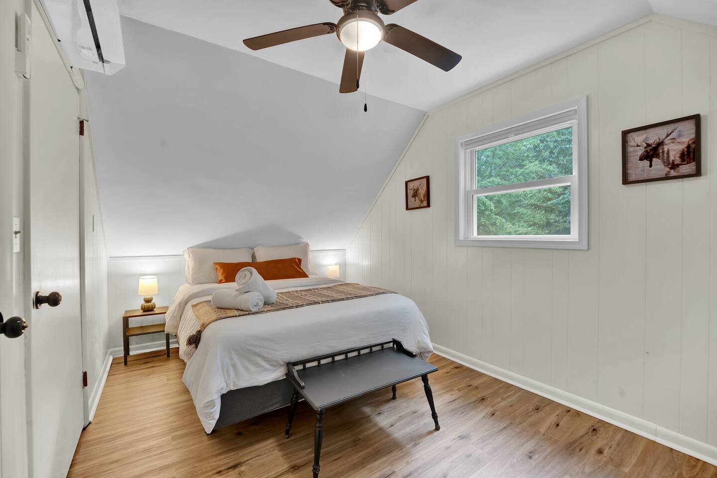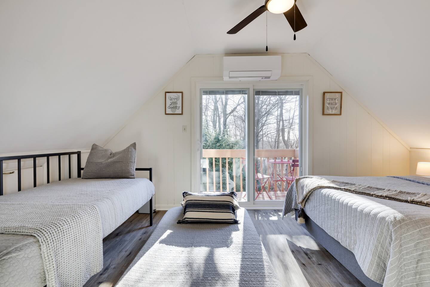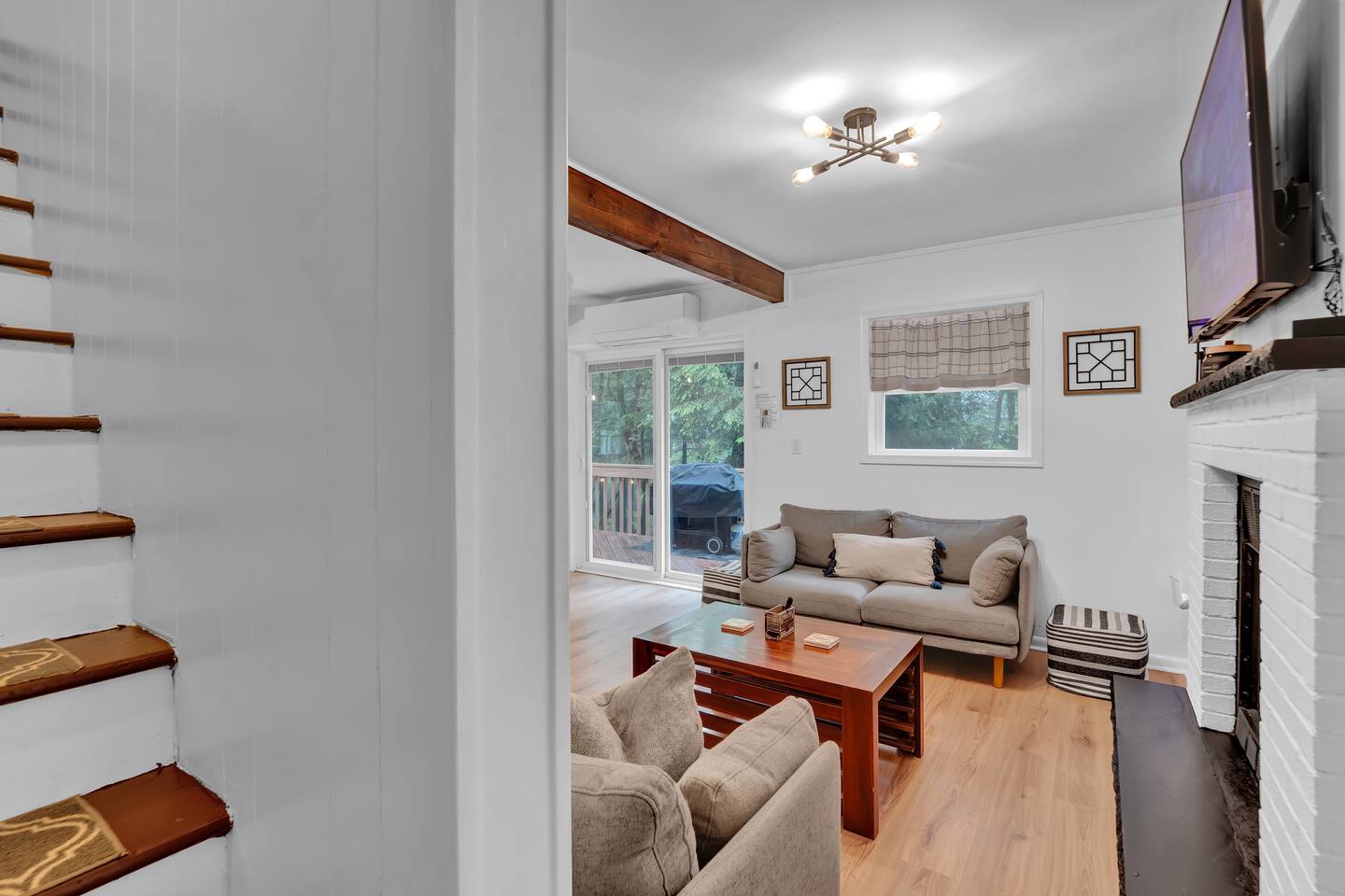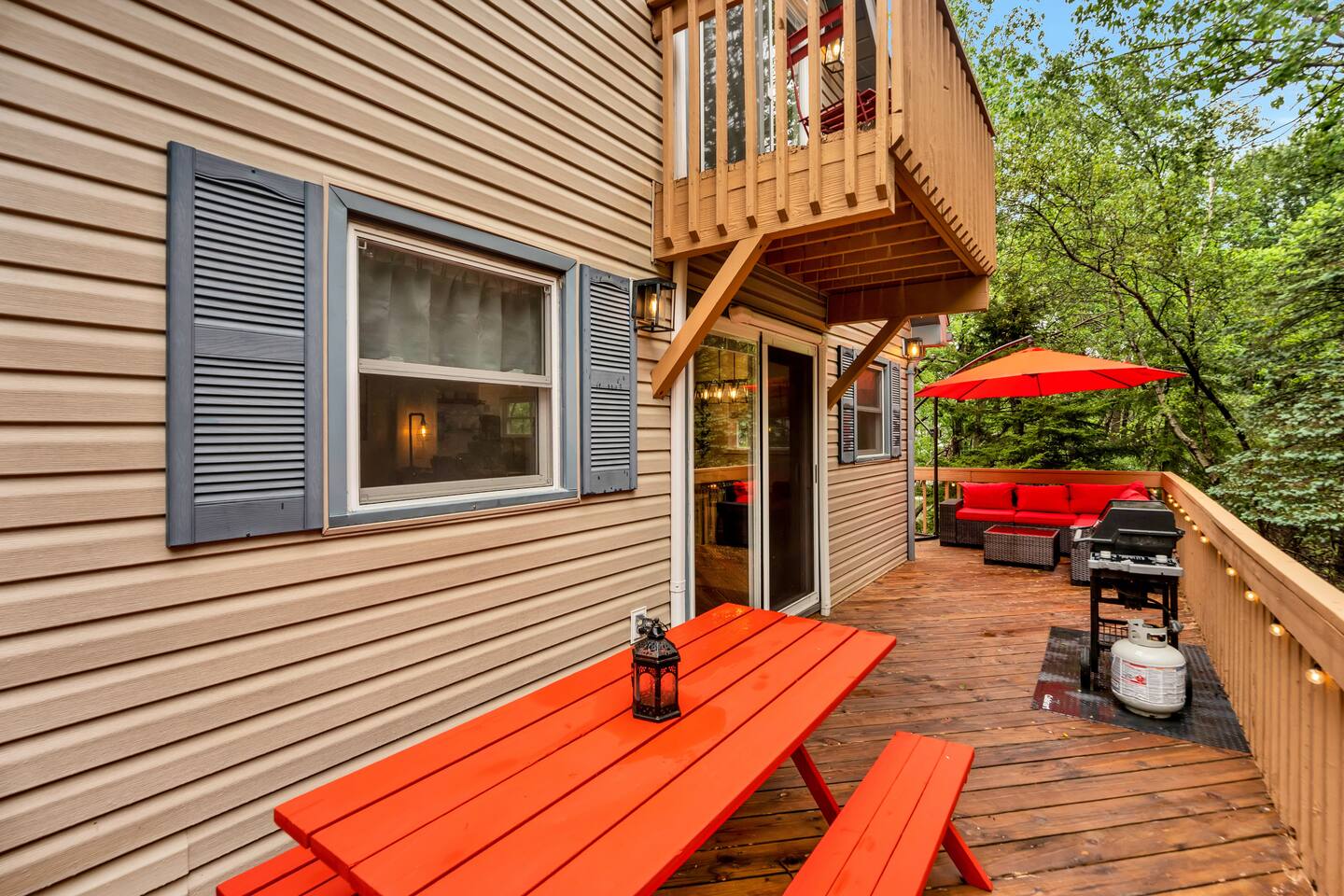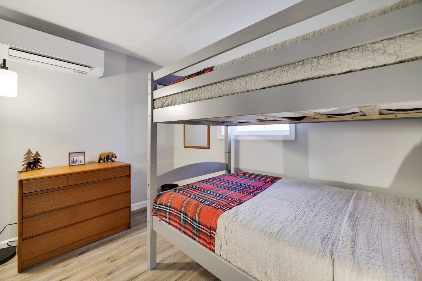 ★LOCATION We are located near Kalahari Indoor Water Park, Camelback Ski Mountain , Mount Airy Casino and the Pocono Raceway! ★KITCHEN Fully equipped w/ cooking basics, dishes & utensils, electric stove, dishwasher, Keurig duo coffee maker, tea kettle, toaster and blender. Fully stocked coffee station. ★ LIVING ROOM Cozy living room with a sectional and loveseat. 55" SmartTV. Electric Fireplace. ★ DINING Expandable dining table ★ GAME ROOM Located on the ground level. The game room features a 3 in 1 multi game table (Pool, Ping Pong& Air Hockey), darts, foosball table and plenty of board games. Comfy sectional, bean bags and a 65" Smart TV. ★OUTDOOR Deck with lounging couches, picnic table & propane grill. Hot tub Fire pit ★ BEDROOMS BEDROOM 1 - (1) Queen Bed, 26” Smart TV + Dresser + Desk BEDROOM 2 - (1) KING Bed + (1) Twin Bed with Trundle + Balcony BEDROOM 3 - (1) Queen Bed + (1) Twin Bed with Trundle BONUS BUNK AREA - (2) Twin over Twin Bunk Beds + Dresser ★ PARKING Driveway in front of property can fit up to 6 cars ★ FEATURES Smart TVs High Speed Internet Wifi (1.2 GB) Smart Lock for Keyless entry BBQ Propane Grill Electric FirePlace Washer and Dryer (Available upon request) Hairdryer Linens | Towels Body Wash | Shampoo| Conditioner | Toilet Paper Dish Soap | Paper Towels | Cleaning supplies