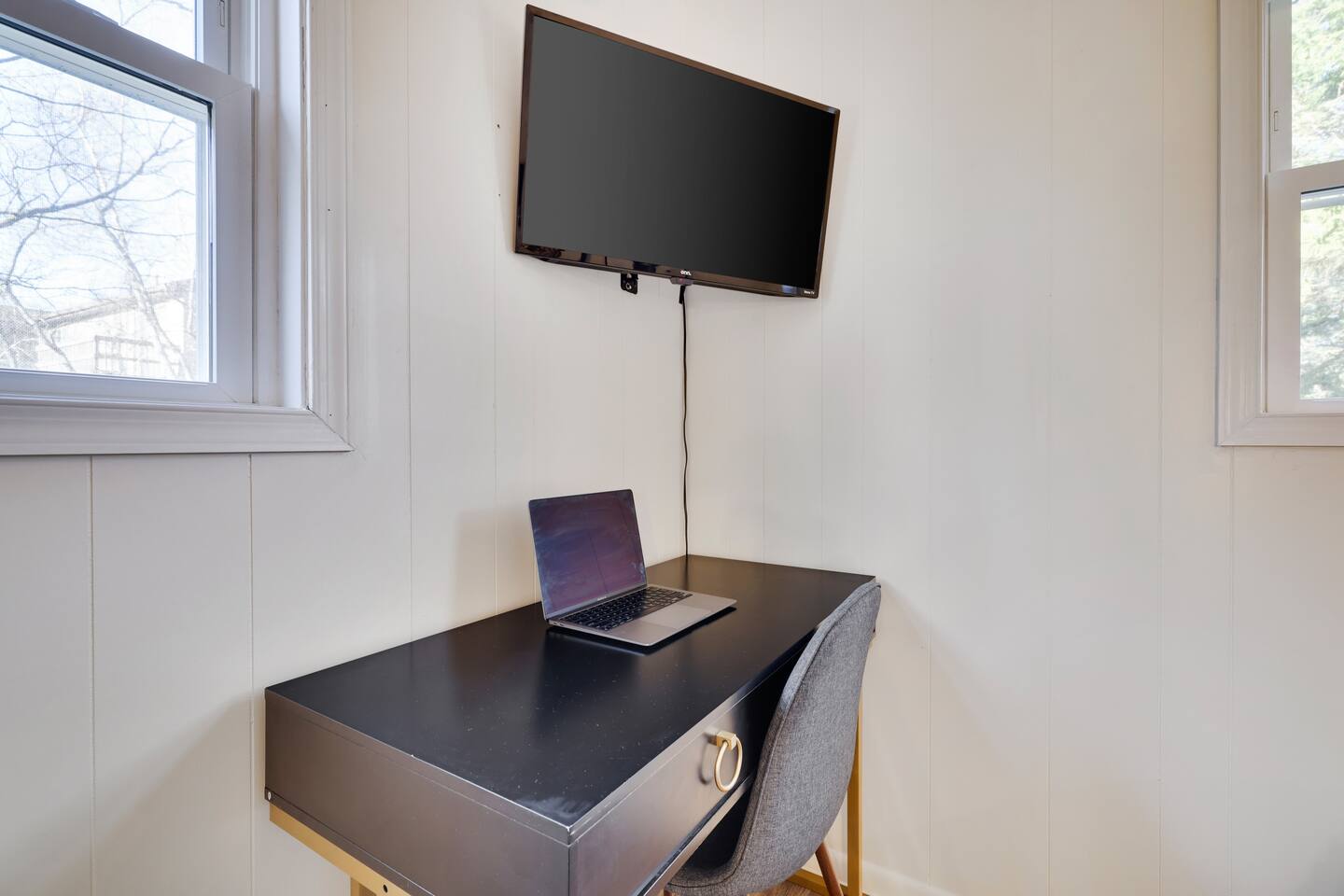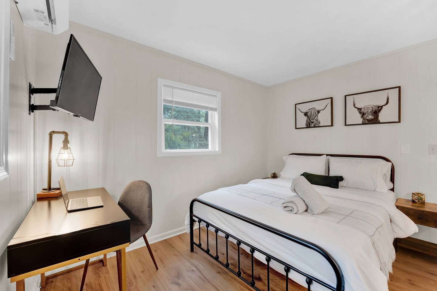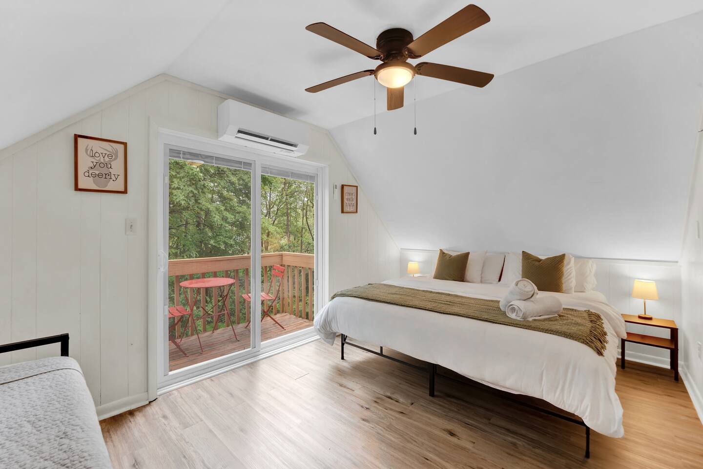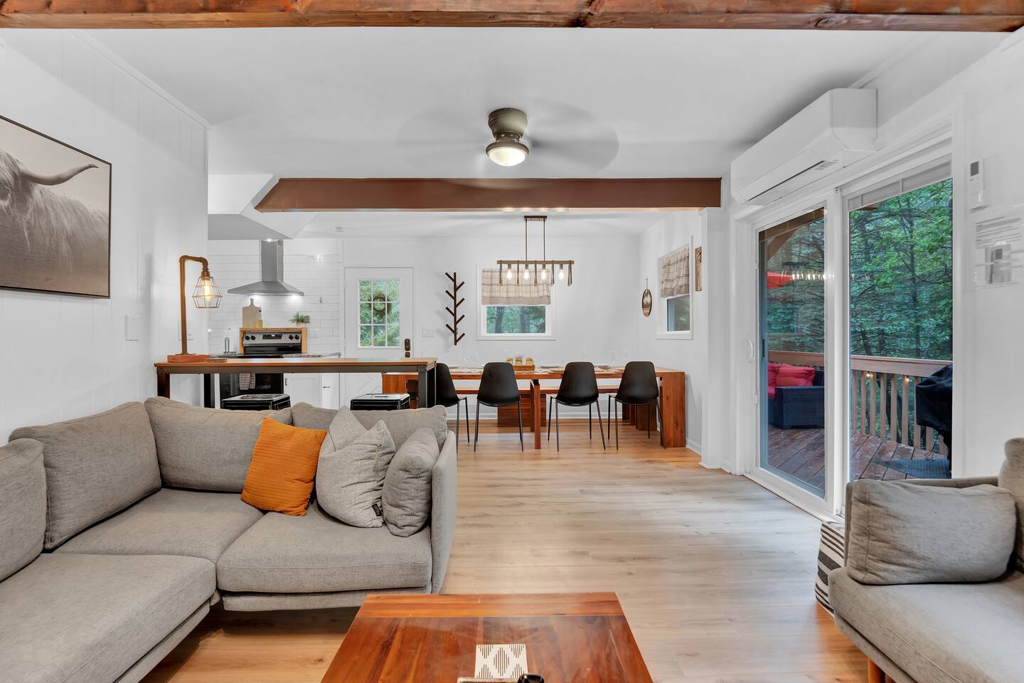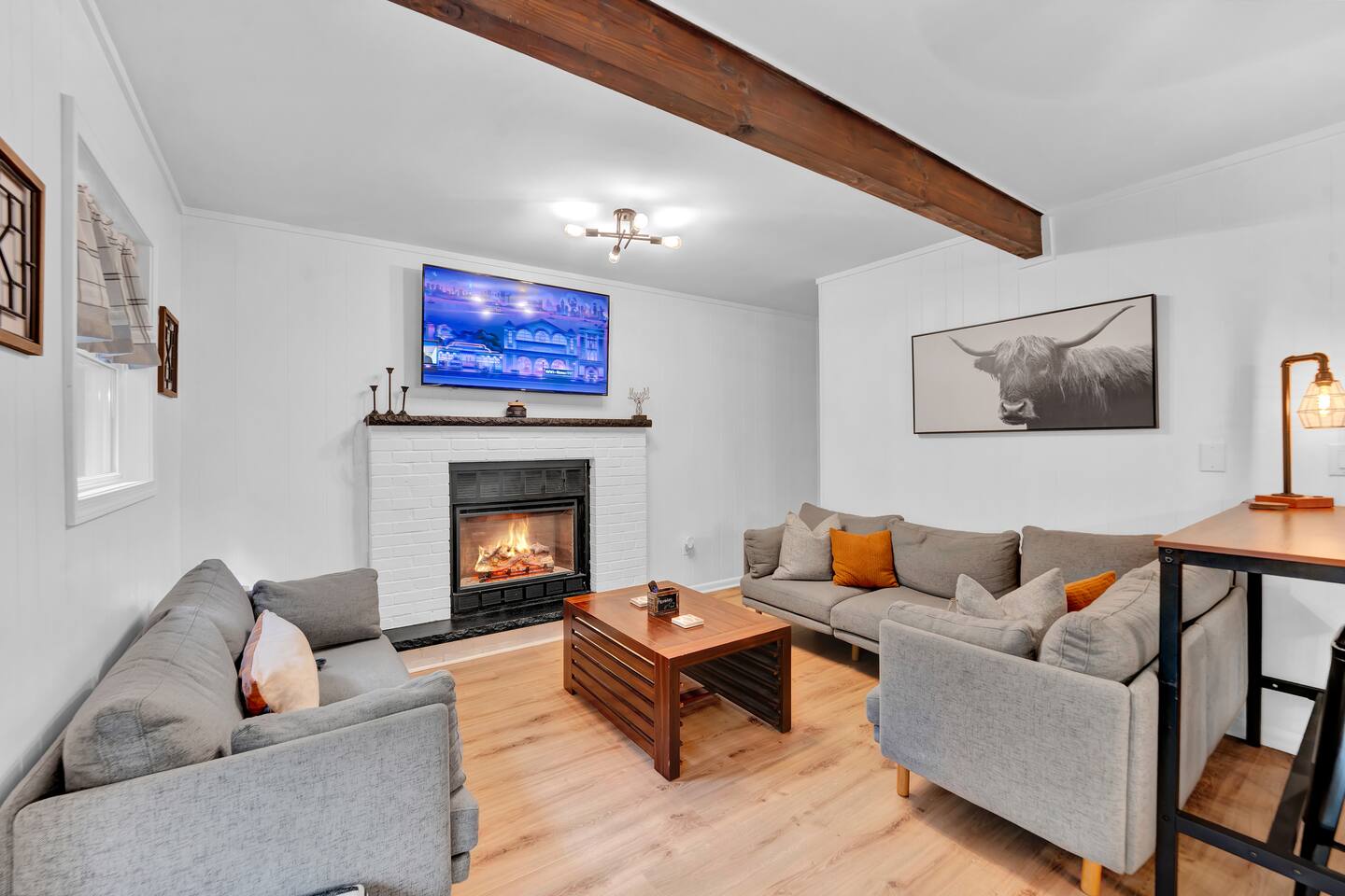 ★LOCATION We are located near Kalahari Indoor Water Park, Camelback Ski Mountain , Mount Airy Casino and the Pocono Raceway! ★KITCHEN Fully equipped w/ cooking basics, dishes & utensils, electric stove, dishwasher, Keurig duo coffee maker, tea kettle, toaster and blender. Fully stocked coffee station. ★ LIVING ROOM Cozy living room with a sectional and loveseat. 55" SmartTV. Electric Fireplace. ★ DINING Expandable dining table ★ GAME ROOM Located on the ground level. The game room features a 3 in 1 multi game table (Pool, Ping Pong& Air Hockey), darts, foosball table and plenty of board games. Comfy sectional, bean bags and a 65" Smart TV. ★OUTDOOR Deck with lounging couches, picnic table & propane grill. Hot tub Fire pit ★ BEDROOMS BEDROOM 1 - (1) Queen Bed, 26” Smart TV + Dresser + Desk BEDROOM 2 - (1) KING Bed + (1) Twin Bed with Trundle + Balcony BEDROOM 3 - (1) Queen Bed + (1) Twin Bed with Trundle BONUS BUNK AREA - (2) Twin over Twin Bunk Beds + Dresser ★ PARKING Driveway in front of property can fit up to 6 cars ★ FEATURES Smart TVs High Speed Internet Wifi (1.2 GB) Smart Lock for Keyless entry BBQ Propane Grill Electric FirePlace Washer and Dryer (Available upon request) Hairdryer Linens | Towels Body Wash | Shampoo| Conditioner | Toilet Paper Dish Soap | Paper Towels | Cleaning supplies
