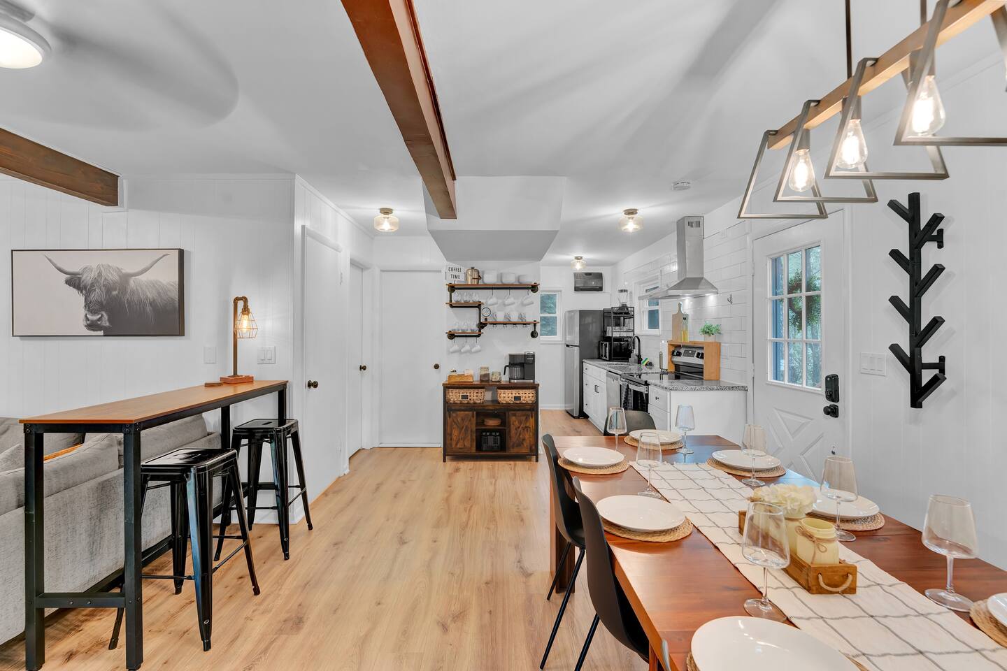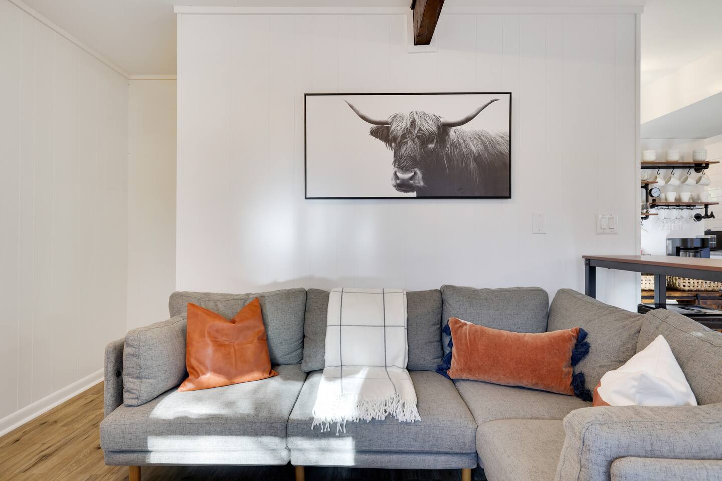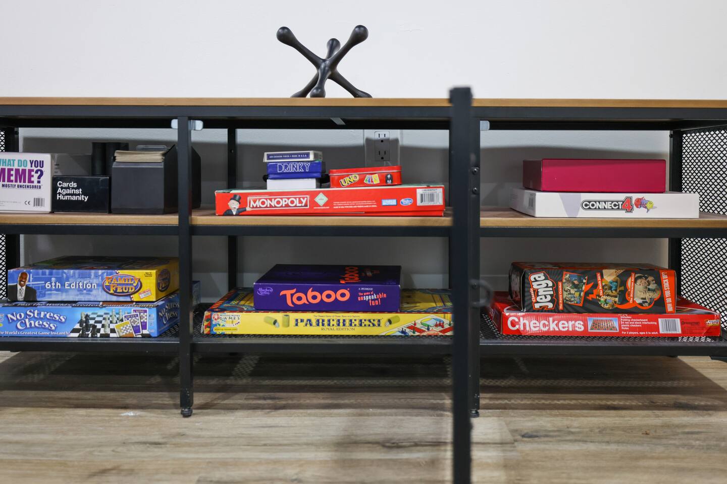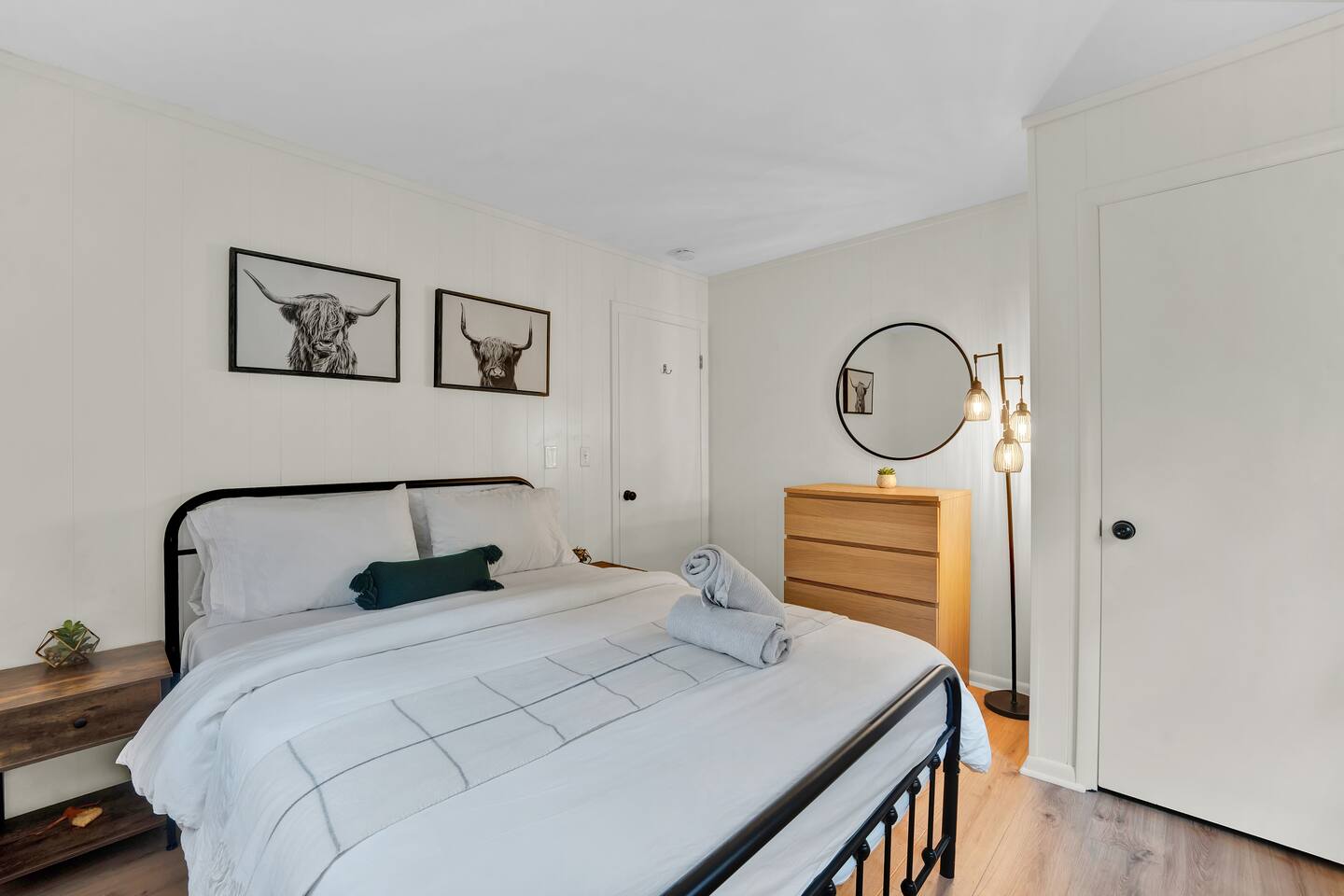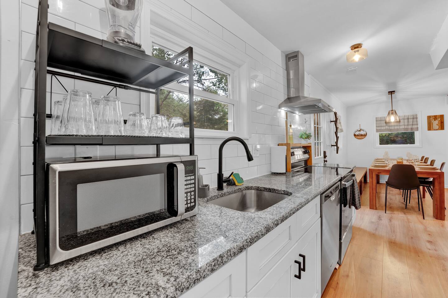 ★LOCATION We are located near Kalahari Indoor Water Park, Camelback Ski Mountain , Mount Airy Casino and the Pocono Raceway! ★KITCHEN Fully equipped w/ cooking basics, dishes & utensils, electric stove, dishwasher, Keurig duo coffee maker, tea kettle, toaster and blender. Fully stocked coffee station. ★ LIVING ROOM Cozy living room with a sectional and loveseat. 55" SmartTV. Electric Fireplace. ★ DINING Expandable dining table ★ GAME ROOM Located on the ground level. The game room features a 3 in 1 multi game table (Pool, Ping Pong& Air Hockey), darts, foosball table and plenty of board games. Comfy sectional, bean bags and a 65" Smart TV. ★OUTDOOR Deck with lounging couches, picnic table & propane grill. Hot tub Fire pit ★ BEDROOMS BEDROOM 1 - (1) Queen Bed, 26” Smart TV + Dresser + Desk BEDROOM 2 - (1) KING Bed + (1) Twin Bed with Trundle + Balcony BEDROOM 3 - (1) Queen Bed + (1) Twin Bed with Trundle BONUS BUNK AREA - (2) Twin over Twin Bunk Beds + Dresser ★ PARKING Driveway in front of property can fit up to 6 cars ★ FEATURES Smart TVs High Speed Internet Wifi (1.2 GB) Smart Lock for Keyless entry BBQ Propane Grill Electric FirePlace Washer and Dryer (Available upon request) Hairdryer Linens | Towels Body Wash | Shampoo| Conditioner | Toilet Paper Dish Soap | Paper Towels | Cleaning supplies